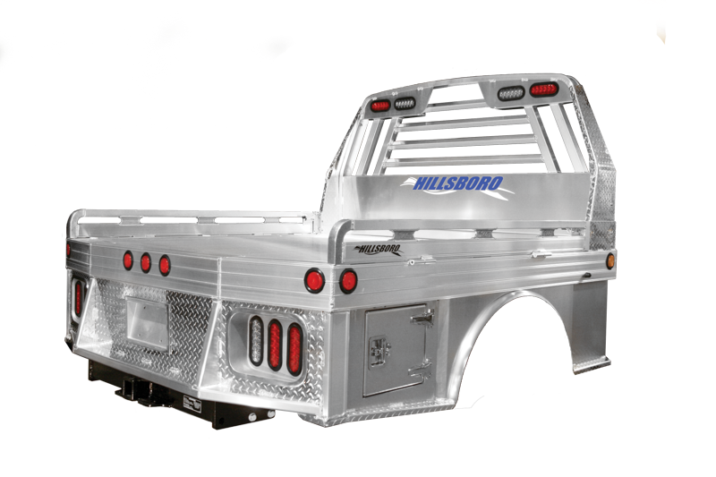 The 4000 Series Aluminum Deck from Hillsboro is engineered for high-performance service and utility trucks. It uses corrosion-resistant extruded aluminum flooring, heavy-duty crossmembers, and adjustable steel long sills to match multiple frame widths. Fold-down sides enable flexible cargo management, while a louvered headache rack provides cab protection without sacrificing visibility. The deck integrates LED lighting (tail, backup, side), recessed castings for lighting, 3″ tie-rails with stake pockets, and a 30K gooseneck ball plate. A 3-year structural warranty ensures long-term peace of mind. This model is ideal for fleet operators who value strength, lightweight design, and low maintenance.