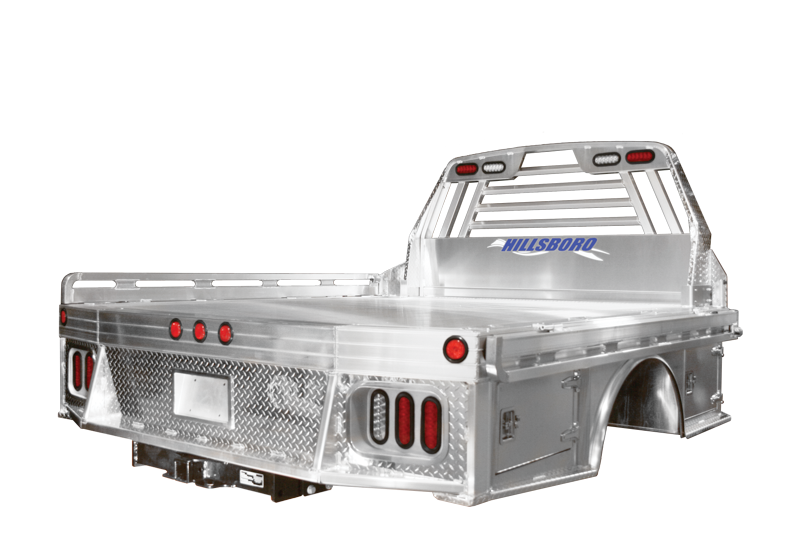 The 4000 Series Aluminum Deck from Hillsboro is engineered for high-performance service and utility trucks. It uses corrosion-resistant extruded aluminum flooring, heavy-duty crossmembers, and adjustable steel long sills to match multiple frame widths. Fold-down sides enable flexible cargo management, while a louvered headache rack provides cab protection without sacrificing visibility. The deck integrates LED lighting (tail, backup, side), recessed castings for lighting, 3″ tie-rails with stake pockets, and a 30K gooseneck ball plate. A 3-year structural warranty ensures long-term peace of mind. This model is ideal for fleet operators who value strength, lightweight design, and low maintenance.