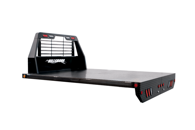 The Hillsboro SLT Steel Flat Deck is built for rugged reliability — crafted from robust steel with a 14-gauge floor plate or 1/8th on wider beds, it delivers serious durability. Backed by a 2-year warranty, this model features an epoxy-primed and black polyurethane finish for long-lasting corrosion resistance, adjustable long sills that fit 34″–42″ frames, and secure load tie-downs with stake pockets and rope ties. The integrated 1.25" square-tube headache rack protects your cab, while LED stop, turn, tail, and backup lights provide excellent visibility. A 30K gooseneck ball plate with flush-mount cover rounds out the package — perfect for hauling and towing with confidence.