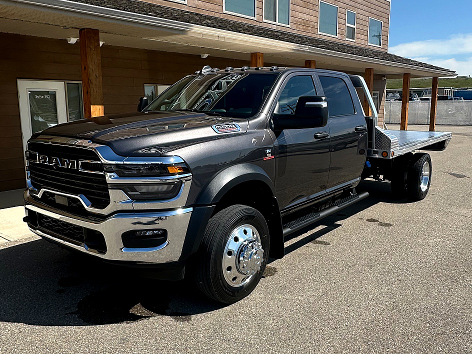 The 2025 Ram 5500 Tradesman Crew Cab Chassis—a pinnacle of durability and performance, meticulously engineered to meet the rigorous demands of commercial operations. This robust vehicle is powered by the renowned 6.7L Cummins® Turbo Diesel I6 engine, delivering 360 horsepower and 800 lb-ft of torque, ensuring exceptional towing and hauling capabilities. The 4.44 axle ratio further enhances its performance making it an ideal choice for heavy-duty applications. The Tradesman trim is thoughtfully designed with a suite of features tailored to enhance both functionality and comfort: • Transmission: Equipped with a 8–Speed TorqueFlite HD Auto Transmission optimized for powerful towing capabilities. • Electrical System: Features a 220-amp alternator and dual 730-amp maintenance-free batteries, ensuring reliable power for all your operational needs. • Towing Equipment: Includes integrated trailer sway control and a comprehensive trailer wiring harness, enhancing safety and convenience during towing operations. • Suspension: Outfitted with heavy-duty shock absorbers and anti-roll bars, providing stability and a smooth ride under various load conditions. • Fuel Capacity: Comes with a substantial 196-Liter fuel tank, reducing downtime and increasing productivity. At Diamond West Sales, we recognize that each business has unique requirements. Therefore, we offer customization options for the truck bed to align with your specific needs. Whether you require different dimensions, additional storage solutions, or specialized equipment mounts, our team is ready to tailor the setup to your exact specifications. For more information or to discuss customization options, please contact Diamond West Sales. Our team is committed to providing top-quality commercial truck solutions across Alberta and Canada.